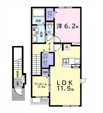 | 間取り | 1LDK(洋6.2・LDK11.5・2.4) | 主要採光面 | - |